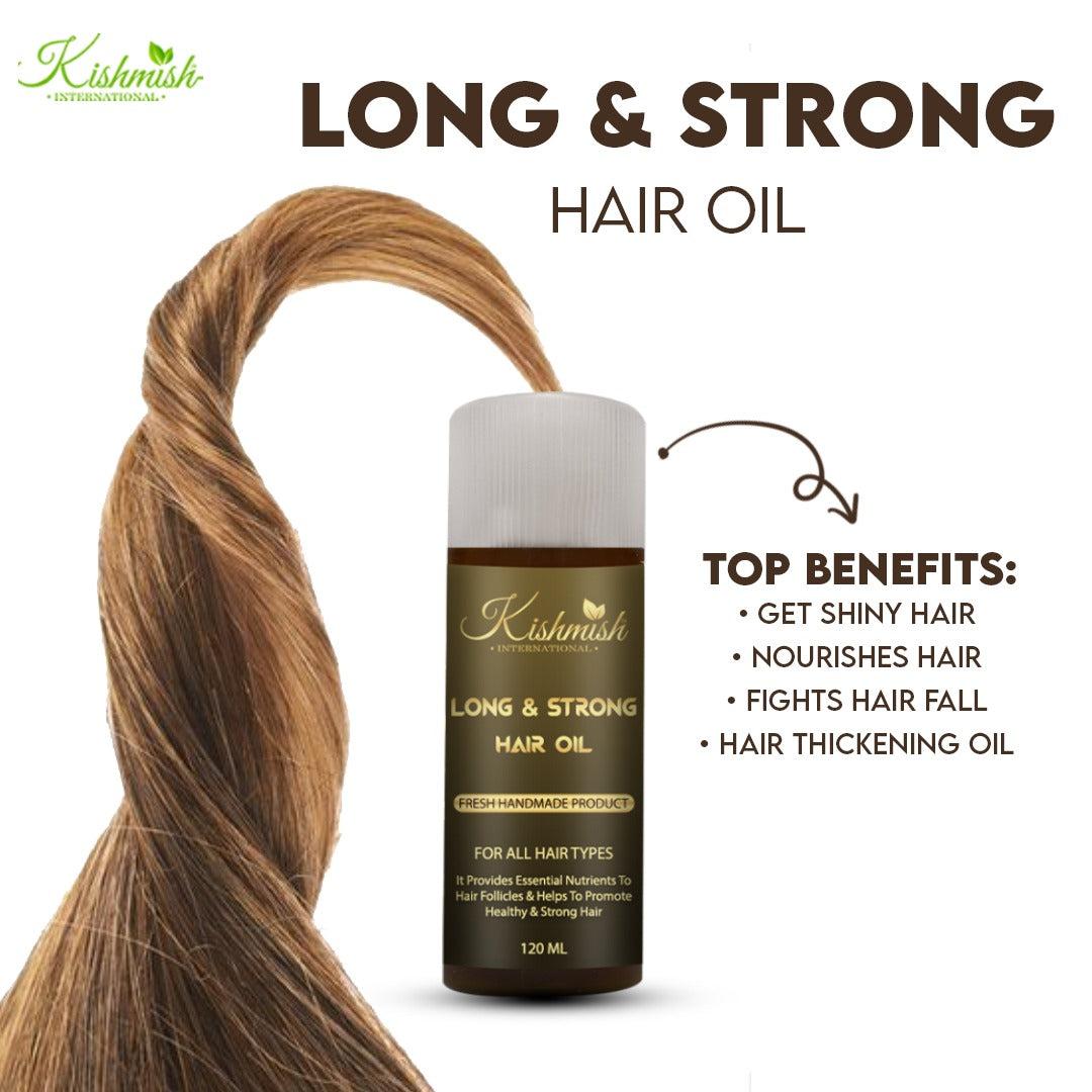 Kishmish Long & Strong Hair Oil contains the natural goodness of Sesame & Coconut oil. It is further enriched with herbs such as Aloe vera & Neem which are known to help promote healthy, long & strong hair. For effective nourishment of hair, Kishmish Organic is a preferred choice of millions. Apply regularly to keep hair healthy, lustrous, and shiny all day long.How Does it Work?